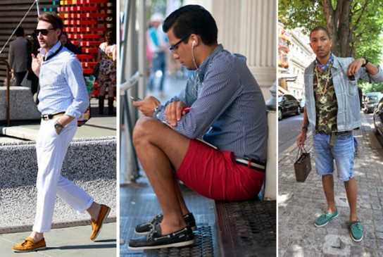 Модные нынче толстовки, пляжные шорты и тренировочные брюки, к сожалению, к мокасинам не подходят. Не пройдет сочетание летних туфель с любой верхней одеждой: плащами, теплыми куртками, пальто, стегаными жилетами.