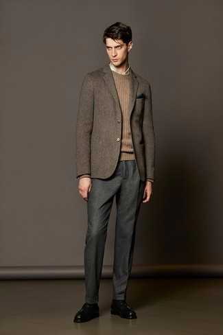Π§Π΅ΡΠ½ΡΠΉ ΠΊΠΎΠΆΠ°Π½ΡΠΉ ΡΠ΅ΠΌΠ΅Π½ΡΠ’Π΅ΠΌΠ½ΠΎ-ΡΠΈΠ½ΠΈΠΉ ΠΏΠΈΠ΄ΠΆΠ°ΠΊ ΠΈ ΡΠ΅ΠΌΠ½ΠΎ-ΡΠΈΠ½ΠΈΠ΅ ΠΊΠ»Π°ΡΡΠΈΡΠ΅ΡΠΊΠΈΠ΅ Π±ΡΡΠΊΠΈ β ΠΎΠ±ΡΠ°Π·Π΅Ρ ΡΡΡΠΎΠ³ΠΎΠ³ΠΎ ΠΌΡΠΆΡΠΊΠΎΠ³ΠΎ ΡΡΠΈΠ»Ρ. ΠΡΠ±ΠΈΡΡ ΡΠΊΡΠΏΠ΅ΡΠΈΠΌΠ΅Π½ΡΠΈΡΠΎΠ²Π°ΡΡ? ΠΠ°Π²Π΅ΡΡΠΈ ΠΎΠ±ΡΠ°Π· Π»ΠΎΡΠ΅ΡΠ°ΠΌΠΈ Ρ ΠΊΠΈΡΡΠΎΡΠΊΠ°ΠΌΠΈ.