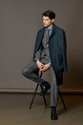 Π‘Π΅ΡΡΠΉ ΠΆΠΈΠ»Π΅Ρ Π² ΡΠΎΡΠ»Π°Π½Π΄ΡΠΊΡΡ ΠΊΠ»Π΅ΡΠΊΡΠ ΠΊΠΎΡΠΈΡΠ½Π΅Π²ΠΎΠΌ Π΄Π»ΠΈΠ½Π½ΠΎΠΌ ΠΏΠ°Π»ΡΡΠΎ ΠΈ ΡΠ΅ΠΌΠ½ΠΎ-ΡΠ΅ΡΡΡ ΠΊΠ»Π°ΡΡΠΈΡΠ΅ΡΠΊΠΈΡ Π±ΡΡΠΊΠ°Ρ ΠΌΠΎΠΆΠ½ΠΎ ΡΠ²ΠΎΠ΄ΠΈΡΡ Π΄Π΅Π²ΡΡΠΊΡ Π² ΡΡΠΈΠ»ΡΠ½ΡΠΉ ΡΠ΅ΡΡΠΎΡΠ°Π½ ΠΈΠ»ΠΈ Π½Π° ΠΏΡΠ΅ΠΌΡΠ΅ΡΡ Π² ΡΠ΅Π°ΡΡ. ΠΠΎΠ΄Π±ΠΈΡΠ°Ρ ΠΎΠ±ΡΠ²Ρ, ΠΌΠΎΠΆΠ½ΠΎ Π½Π΅ΠΌΠ½ΠΎΠ³ΠΎ ΠΏΠΎΡΠΊΡΠΏΠ΅ΡΠΈΠΌΠ΅Π½ΡΠΈΡΠΎΠ²Π°ΡΡ ΠΈ Π·Π°ΠΊΠΎΠ½ΡΠΈΡΡ Π»ΡΠΊ ΡΠ΅ΠΌΠ½ΠΎ-ΡΠΈΠ½Π΅-Π·Π΅Π»Π΅Π½ΡΠΌΠΈ Π»ΠΎΡΠ΅ΡΠ°ΠΌΠΈ Ρ ΠΊΠΈΡΡΠΎΡΠΊΠ°ΠΌΠΈ.