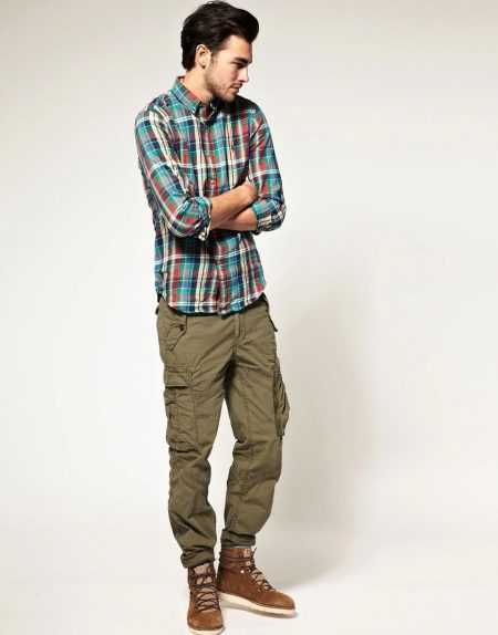 Клетчатый рисунок может быть достаточно бледным или более насыщенным. В первом случае можно сочетать брюки с джемпером или пиджаком. Яркую клетку лучше комбинировать со стильной рубашкой или однотонной курткой.