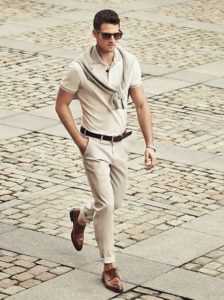 Важно! При создании наряда всегда обращайте внимание на аксессуары. Это могут быть часы, браслеты, темные очки, галстук, шейный платок и так далее. Как правило, все эти вещи подбираются в тон обуви.