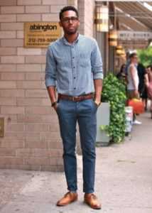 Коричневый хорошо работает с синим. В классическом костюме этот эффект часто используется, однако там берутся исключительно темные кобальтовые ткани. Однако в повседневной жизни можно отдавать предпочтение и более свежим и легким оттенком.