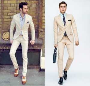 Для летних, светлых костюмов и штанов подбирайте туфли бежевого цвета.