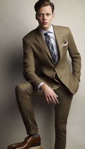 К костюмам и брюкам защитно-зеленых оттенков лучше всего подходят коричневые туфли. Однако необходимо проявлять осторожность. Только в ходе примерки можно выяснить, насколько удачен союз выбранных тонов. Оттенки хаки и коричневого очень разнообразны, и далеко не все из них способны подружиться.