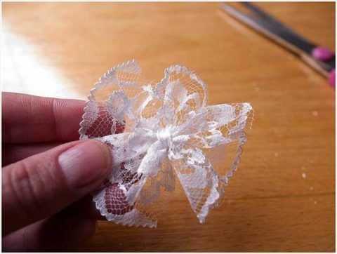 ![]() Бант | Сделайте бантик, перевязав ткань ленточкой. |