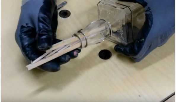 ![]() Кипячение | Прокипятите 15 минут дерево, чтобы его сложить. Так вы сможете продеть мягкий материал внутрь бутылки. |