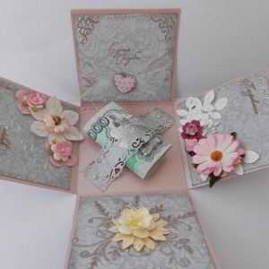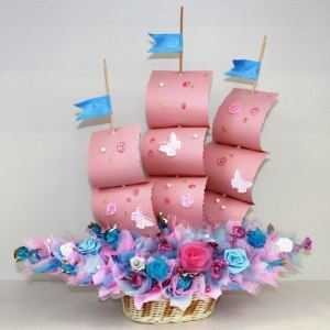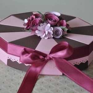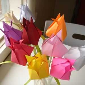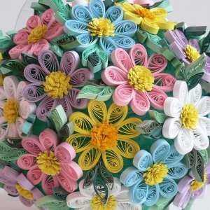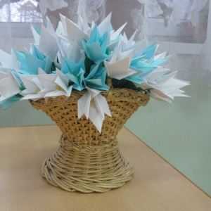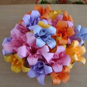 Это могут быть оригами лилии или другие цветы из плотной бумаги, внутри которых можно спрятать приятное поздравление и послание или интересную вещицу. Несложно сделать и розы из бумаги для декорирования из отдельных круглых листов, собирая из вокруг «сердцевины» так, чтобы своим видом они напоминали розу. Для создания цветов часто используют жатую бумагу или технику «квиллинг» — создание форм и изображений, закручивая и клея полосы из бумаги.
