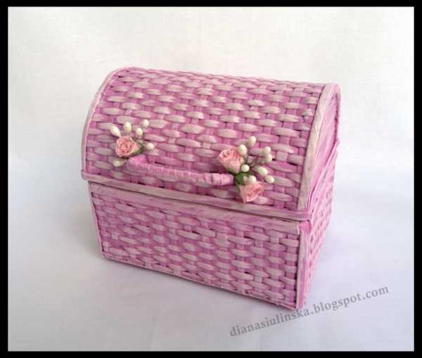 Сплетенное изделие нужно покрыть клеем ПВА, разбавленным водой и дать высохнуть. После этого покрыть лаком. Чтобы получить разноцветное изделие, трубочки нужно делать из белой бумаги и красить их колером в нужный цвет или морилкой.