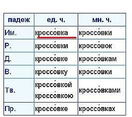 На фото упорядоченно продемонстрированы все основные падежные формы quot;кроссовкиquot;: