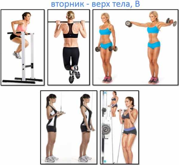 Организм женщины устроен так, что при занятиях спортом нижняя часть тела (живот, ягодицы и ноги) наращивают мышечную массу быстрее, чем верхняя часть. Поэтому, чтобы все группы мышц получали нагрузку, распределяем нагрузку равномерно.