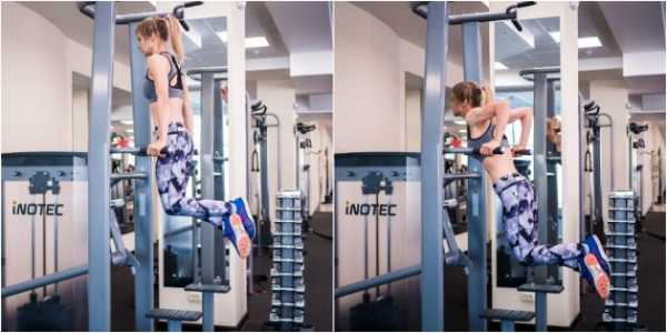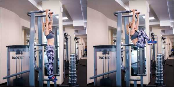 Если это получается легко, попробуйте поднимать прямые ноги к турнику.
