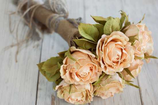 - Если розы предстоит дарить на свадьбу, то можно ограничиться небольшим букетом. Идеально смотрится композиция из пяти – девяти роз.