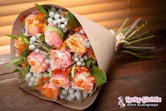 Герберы, тюльпаны, нарциссы, лилии дарят, собирая букет из нескольких растений. При этом если решено подарить около семи штук, то их достаточно просто перевязать лентой из атласа или бархата. А букет с большим количеством цветков упаковывают в крафт или другую подарочную упаковку.