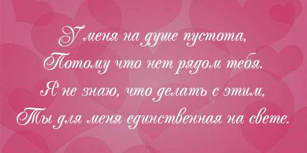 Смс любимой девушке скучаю красивые слова до слез Моя любимая фея, я с трепетом вспоминаю волшебство твоих невероятно бездонных глаз, и всецело готов познать…