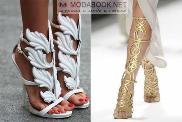 - с ремешками, охватывающими переднюю часть стопы, подъем, пятку и область щиколоток, которые получили название гладиаторы.