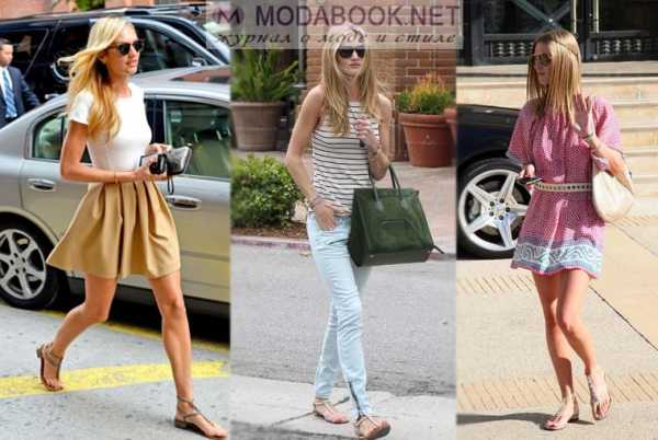 Сандалии-гладиаторы могут стать настоящим украшением нарядов в стиле бохо, сафари или милитари. Также они могут дополнить и романтический стиль, добавив некую брутальность. Интересный внешний вид сандалий позволяет пофантазировать и создать уникальный образ для разных жизненных случаев.