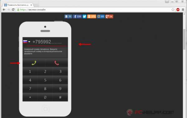 На главной странице сайта в поле где требуется ввести номер телефона набираем телефон собеседника, один нюанс номер телефона начинайте вводить не с 8, а с 7