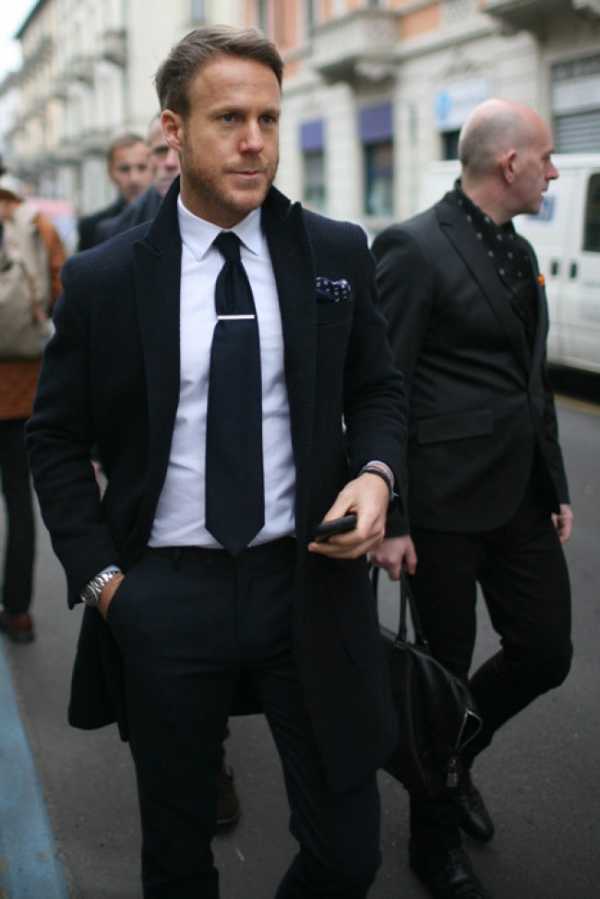 К любому мужскому костюму темного цвета идеально подойдет зажим для галстука черного цвета, осторожность следует проявить при выборе зажима синего цвета, так как его можно будет сочетать лишь с синим галстуком.