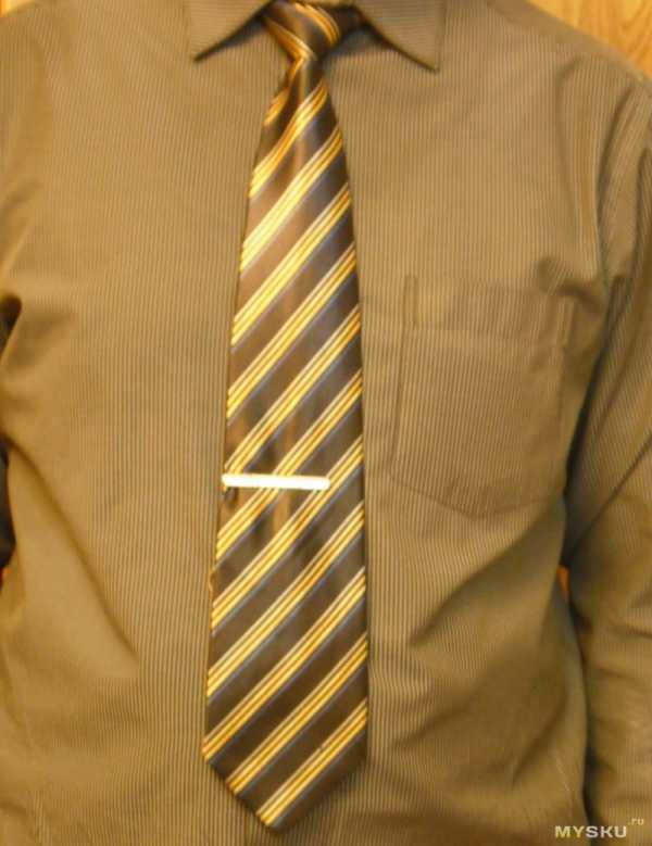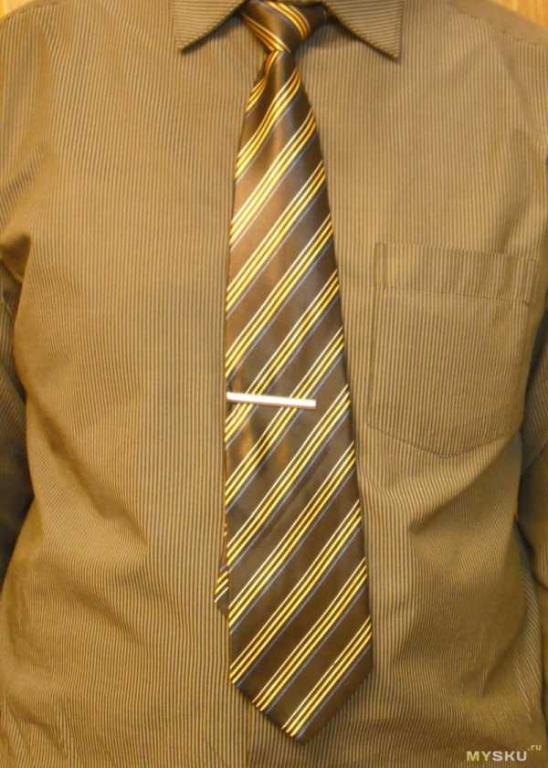 - Длина заколки и ширина галстука должны быть примерно равны, ни в коем случае зажим не должен быть шире.